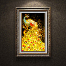 钻石画满钻金孔雀油画钻石绣金色凤凰客厅玄关竖版大幅贴钻十字绣