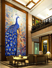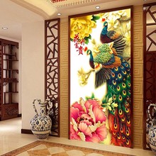 新款5D钻石画满钻石绣孔雀玄关十字绣竖版欧式蓝孔雀贴钻绣点钻画