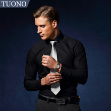 TUONO轻奢托诺男装全棉修身免烫正装纯色春装商务男士长袖衬衫