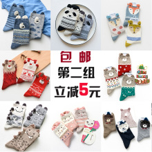 女袜 纯棉中筒袜秋冬 学生韩版棉袜 卡通可爱全棉短袜 圣诞袜包邮
