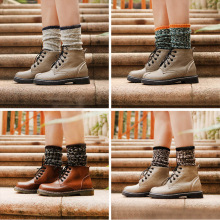 袜女 棉袜 堆堆袜加厚中高筒袜秋冬 新款简约森系民族女袜子包邮