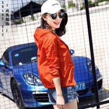 欧洲站2017夏装防晒服女新款时尚连帽短款薄外套休闲百搭防晒衣潮