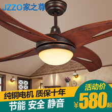 家之尊美式实木吊扇灯 餐厅卧室风扇灯 客厅LED家用复古带灯扇