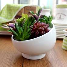 爆款个性陶瓷盆栽多肉植物圆形斜口白色盆景创意时尚简约可爱花盆