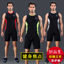 健身房运动套装男无袖健身服背心短裤紧身跑步衣服男速干套装男夏