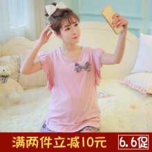 夏季孕妇睡衣棉质月子服夏短袖 宽松大码产后哺乳衣套装韩版外出