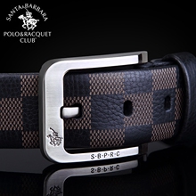 圣大保罗polo 男士皮带真皮针扣休闲宽腰带 格纹整张头层牛皮腰带