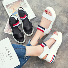 厚底凉鞋女夏2017新款韩版学生百搭休闲防滑真皮中跟松糕罗马女鞋