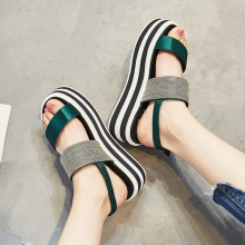 厚底一字扣带凉鞋女夏季2017新款百搭学生休闲中跟松糕罗马凉鞋子