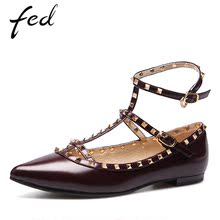 fed2017春夏休闲浅口尖头铆钉平底单鞋女1993165
