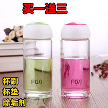 富光玻璃杯双层防漏茶杯男女士便携水杯子280ml/620ml单层带提绳