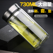 正品玻璃杯男女士双层玻璃杯带盖便携大容量过滤透明耐热车载水杯