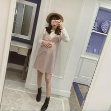 秋季新款孕妇装宽松长袖毛衣针织上衣拼接假两件连衣裙