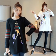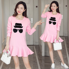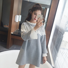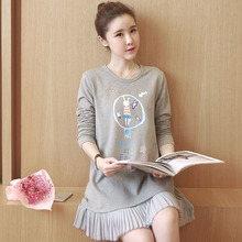 韩版孕妇装秋装上衣加绒长袖显瘦百搭纯棉怀孕期连衣裙中长款潮妈