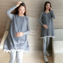 2016秋季孕妇裙新款韩版蕾丝打底长袖上衣吊带孕妇套装连衣裙