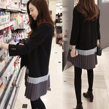 2016秋冬孕妇连衣裙名媛气质长袖打底大码拼接百褶裙宽松显瘦孕妇
