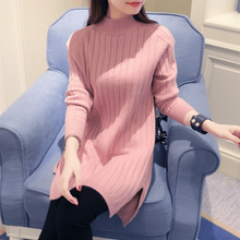 孕妇毛衣中长款冬季潮妈韩版纯色秋冬保暖上衣打底宽松粉色针织衫