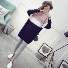 2016秋冬孕妇毛衣中长款 撞色条纹拼接宽松显瘦 针织孕妇连衣裙