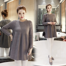 2016秋冬孕妇毛衣连衣裙中长款圆领百褶裙长袖针织宽松显瘦娃娃装
