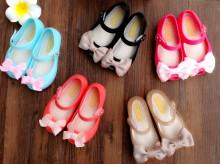 春秋新款大布蝴蝶结童鞋果冻鞋儿童软底韩版公主女童鱼嘴单鞋