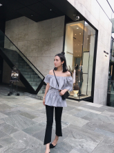 MALI/2017夏季新款 设计款立体抽绳不规则一字领造型上衣(特)