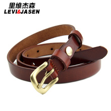 里维杰森皮带男士真皮针扣头层纯牛皮韩版青年商务正装腰带窄裤带