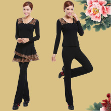 艳王广场舞服装套装春夏季长袖长裤中老年女舞蹈拉丁舞衣服两件套