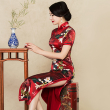 红鸾旗袍2017春夏新款真丝长款旗袍连衣裙桑蚕丝改良红色中式礼服