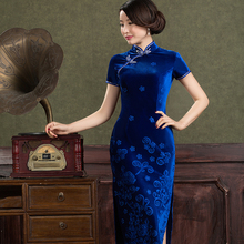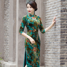 蔷薇短款旗袍新款春秋装中长袖改良时尚妈妈装金丝绒中长款旗袍裙