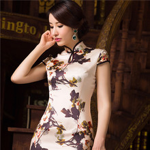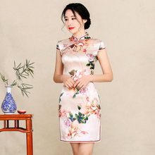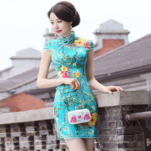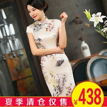 花露旗袍短款修身性感桑蚕丝旗袍2017春夏新款改良日常真丝连衣裙
