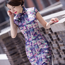 粉知春 旗袍2016夏装新款时尚改良修身真丝旗袍短款桑蚕丝连衣裙