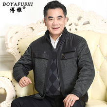 冬装中年男士立领加厚夹克衫中老年男装加绒外套爸爸装宽松小棉袄