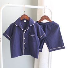 儿童棉麻亲子家居服套装,男女童韩版短袖睡衣韩国童装代购空调服