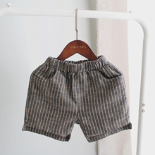 男女童夏季条纹棉麻短裤,松紧腰透气裤子,韩国童装休闲复古文艺