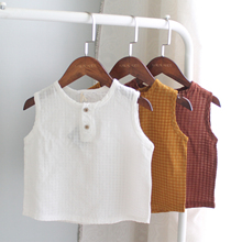 简约文艺范!男女童格子棉麻背心T恤,儿童无袖上衣韩国童装夏季