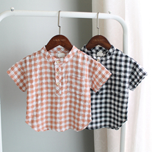 中性立领格子衬衫男童女童纯棉短袖衬衣学院风韩国童装定制代购款