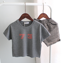 男童女童条纹纯棉T恤,儿童宽松圆领字母T夏季童装打底衫上衣