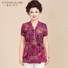 雅诗丽兰中老年女装夏装t恤妈妈装t恤中年妇女大码t恤印花上衣女