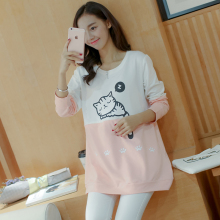 拍的白色,买来是想搭配之前买的一条浅灰色背带裤的。衣服整体感觉很好,米色小猫颜色较图片深一些,现在孕七个多月,身高168体重130,这个尺码肩正好,衣身超宽松,等九十月份穿薄厚正好,应该也还算宽松。