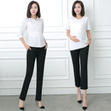 孕妇白色短袖衬衫孕妇装夏装职业装工装工作服夏季短款白衬衣上衣