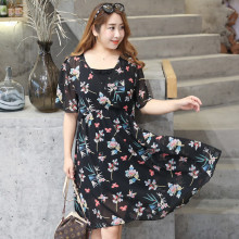 木子姐大码女装 小清新碎花连衣裙雪纺印花假两件吊带裙