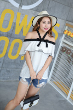 木子姐大码女装法式精致仙范~挂脖露肩上衣雪纺衫一字领露肩衬衫