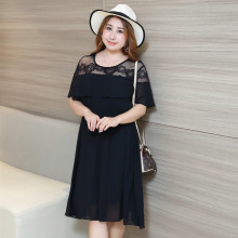木子姐大码女装 黑色显瘦雪纺连衣裙夏季新品飘逸仙女款胖mm女裙