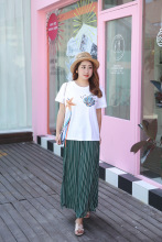 木子姐大码女装 宽松胖mm中长款T恤鱼尾连衣裙小挎包棉短袖
