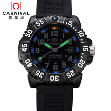 嘉年华夜光男表精钢潜水表氚气自发光军表防水男士手表