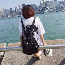 2017韩版新款女包轻便潮金属网双肩包学院风书包百搭牛津布大背包