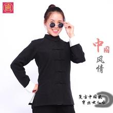 中国风中式纯棉粗布汉服改良盘扣长袖春秋双层女唐装女式外套上衣