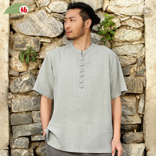 楠唐装中国风男装夏季短袖衬衫男中式立领宽松男衬衣纯色薄款体恤