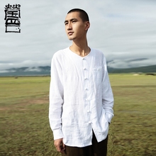 莹罡逍遥游17春季新款亚麻斜襟铜扣长袖衬衣都市休闲棉麻中式衬衫