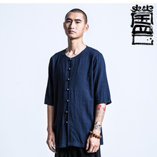 莹罡琥翼夏中国风斜襟盘扣亚麻汉服休闲改良汉服唐装男士短袖t恤